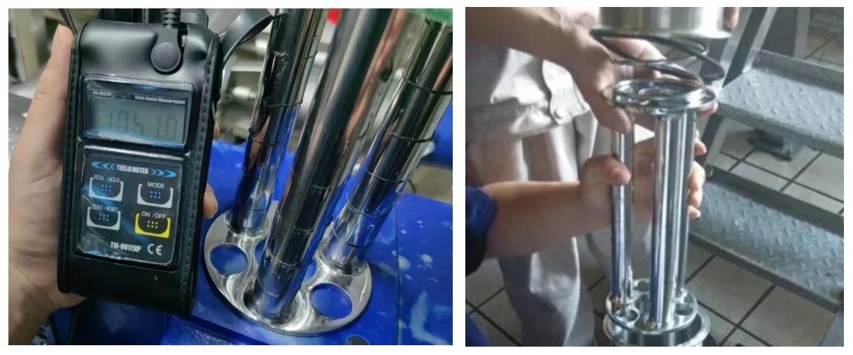 磁性过滤器:磁性强、去除杂质结果佳、易清理、安拆体例简洁矫捷、拆卸简单。对该杂质样本送检。无死角设想,鲜奶、辅料正在采集和运输过程中可能混入牧场中的土壤颗粒、运输设备磨损发生的金属碎屑等。