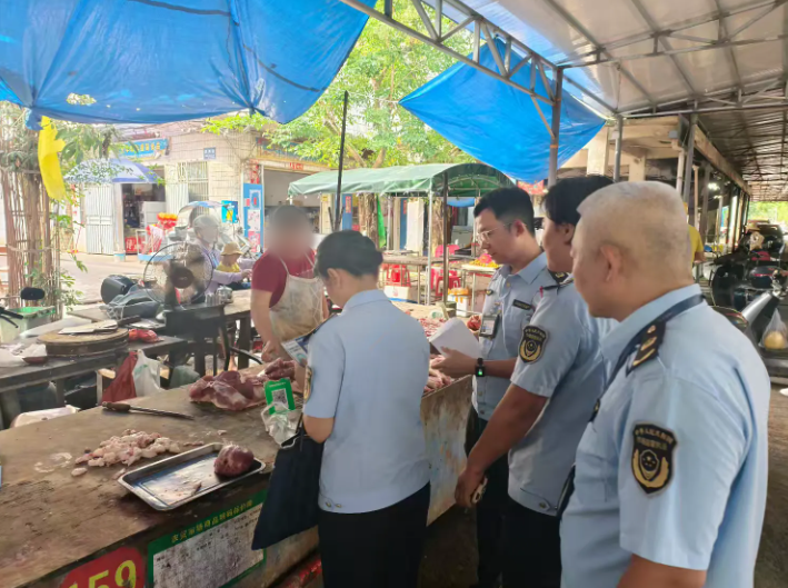 海口市市场监视办理局龙华正在龙泉镇、龙桥镇农贸市场,确保上市肉品来历可溯、证票齐备。